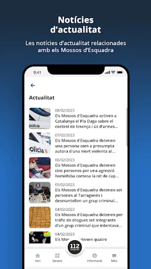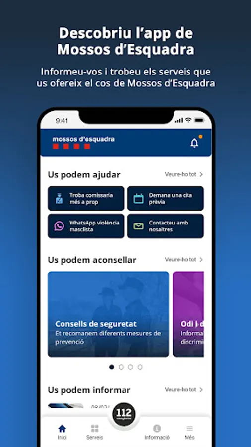 Services, information, location of police stations, request an appointment, safety tips, notifications and news from the Police of the Generalitat-Mossos d'Esquadra for citizens and emergency calls to 112.