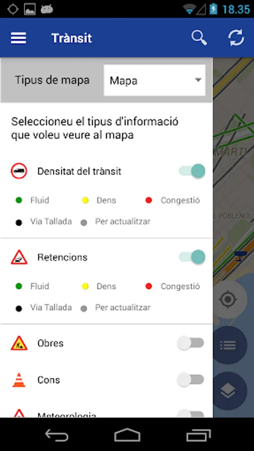 The App traffic map of the Catalan Traffic Service allows you to see the traffic in real time to road accidents incorporating the Barcelona City Council, the General Directorate of Traffic in border areas and the Government of Andorra. In the case of the City Council and the Government of Andorra also be consulted their cameras.
