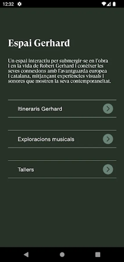 The tool to enjoy your visit to Espai Gerhard in an immersive way. Come prepared: download it now and when you arrive in Valls, enjoy the itineraries and experiences that we propose around this great composer (Robert Gerhard Ottenwaelder, Valls 1896-Cambridge 1970).