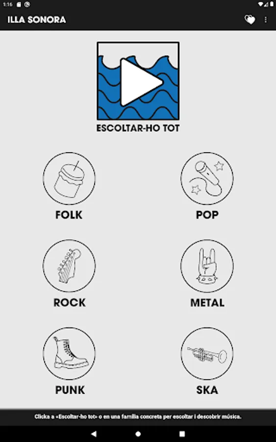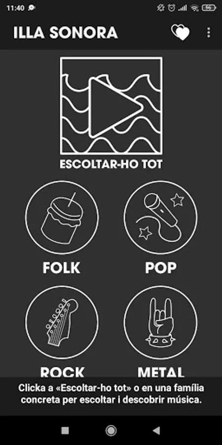 Application of the Illa Sonora platform, where you can listen to music without having to access the web.