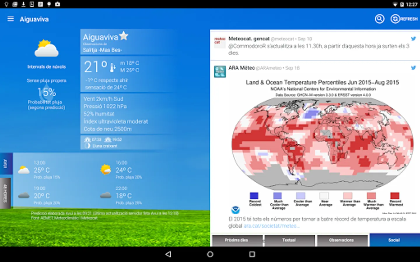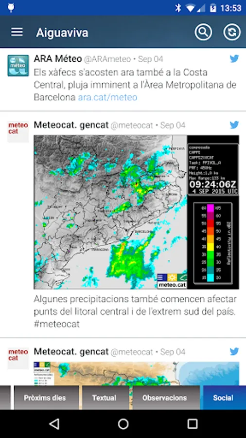 - Pestanya social amb Tweets de Meteocat and altres fonts