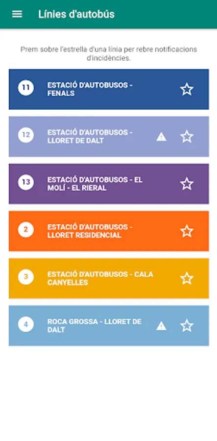 · My bus stops: Direct access to those stops marked as favorites. Clicking on a specific bus stop gives you the next bus arrival and the scheduled departures. It also allows you to consult incidences or download a pdf document with the full schedule of the bus line.