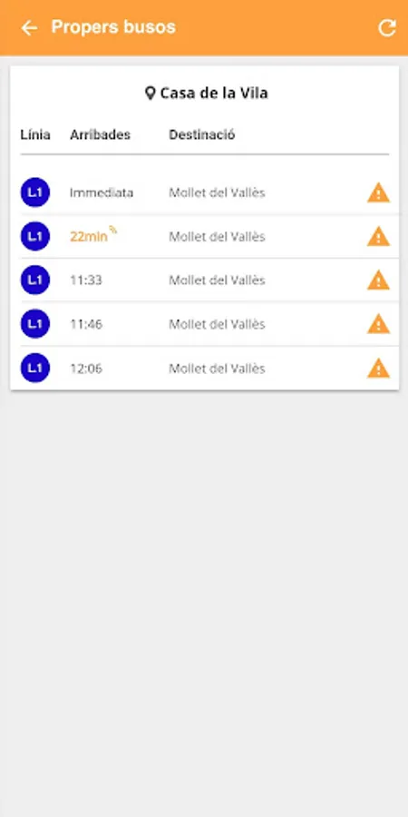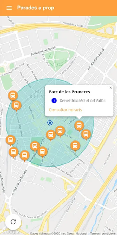 · My bus stops: Direct access to those stops marked as favorites. Clicking on a specific bus stop gives you the next bus arrival and the scheduled departures. It also allows you to consult incidences or download a pdf document with the full schedule of the bus line.