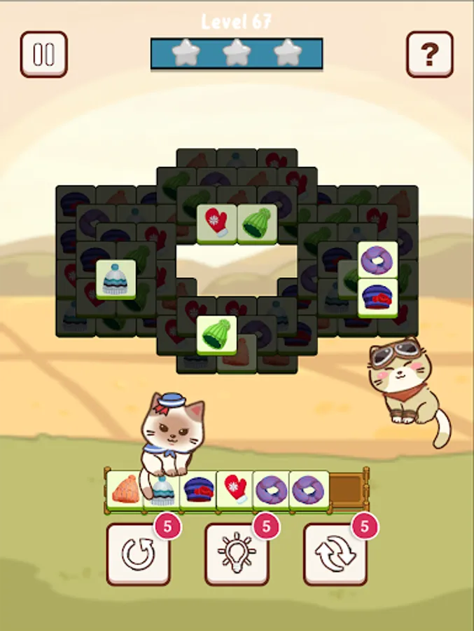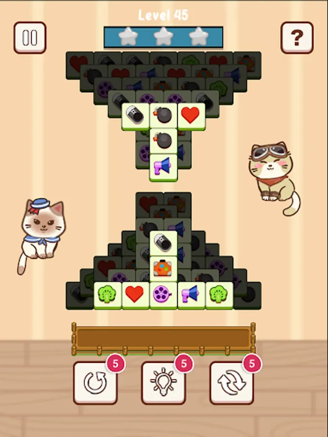 🔆 Tiles will have many layers in CatNCat. Only after the tiles on the upper layer are eliminated, the blocks on the lower layer can be eliminated.