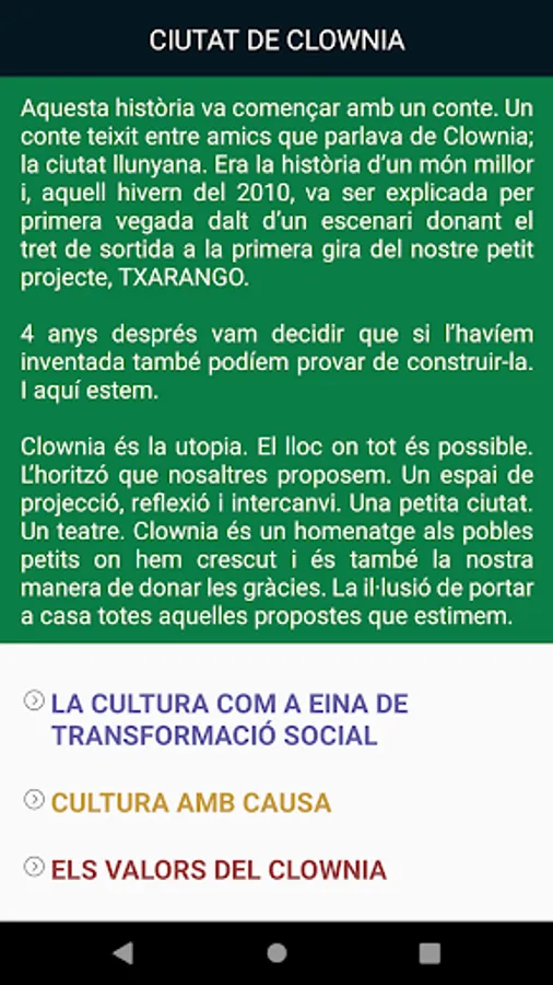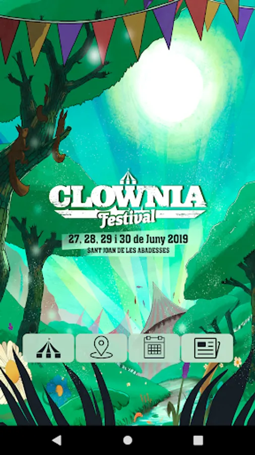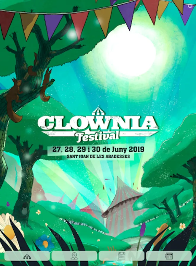 Long description: Clownia, the four-day Festival of "party, music and conscience" of Sant Joan de les Abadesses, presents its APP in which you will find the following information and functions:
