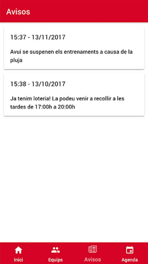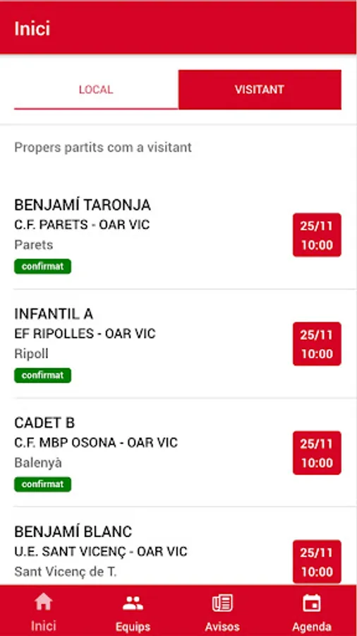 Implementation of the football club OAR Vic where you'll find the next matches, warnings and information related to the club.