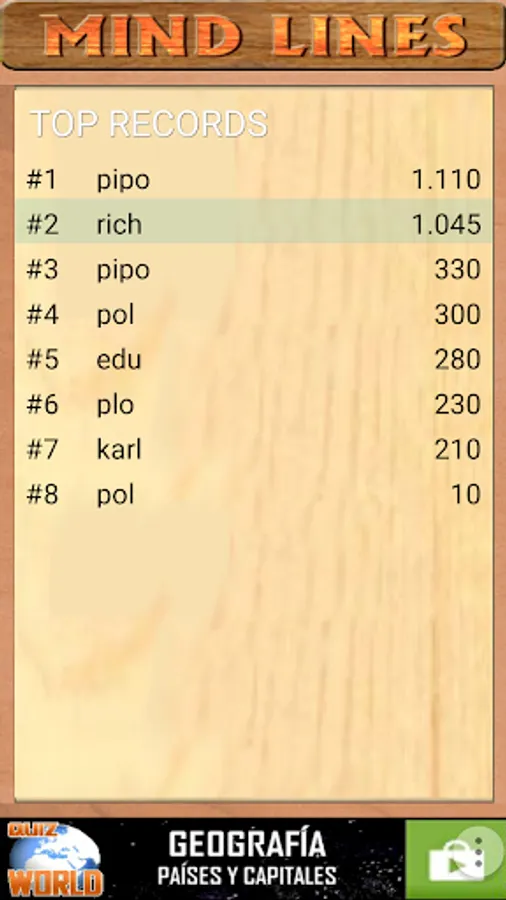After the game, if you have passed your best score, you are be sent to our servers to check on the table best brands. This table shows only the top 20 players in the world ... do you think you can be one of them?