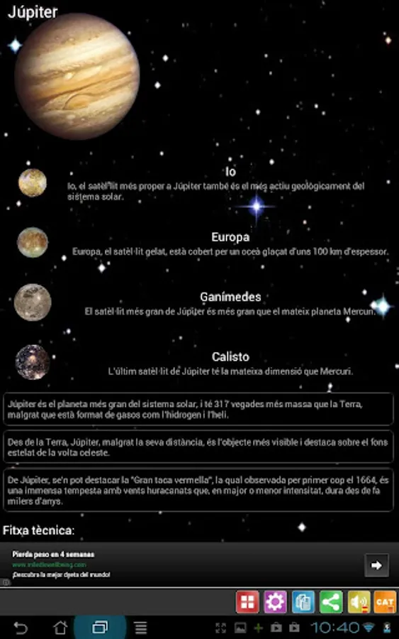 It also includes the list of all the planets in the Solar System and their satellites with photographs, explanations and a data sheet with the most relevant data.