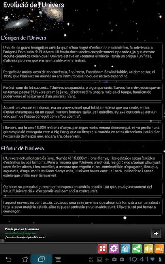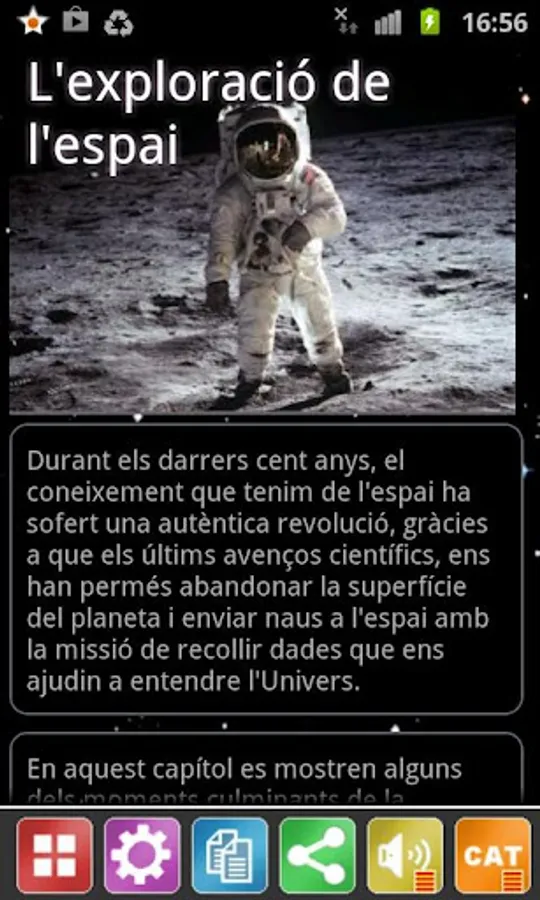In this application, you will find the most important concepts about astronomy, explained in a fun way and with the possibility that the speech synthesizer will read them to you in a relaxed way.