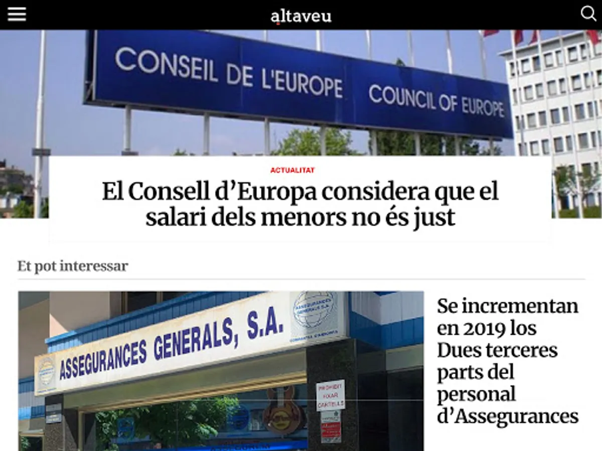 Altaveu.com is a website with an electronic journal, with eminently Andorran content owned by the recently established company (2017) in the Principat Altaveu SL. We intend to be a cross-sectional digital communication medium that includes information from diverse opinions, plural, clear and forceful but, at the same time, respectful. A rigorous but straightforward electronic newspaper, which aims to put on the table of debate aspects that in other media forums, traditional or not, are often silenced. We are a small team of interdisciplinary professionals who look to knit a network of collaborators as broadly as possible. With a vocation to say things by name and looking, among all, to finish explaining why all of this.