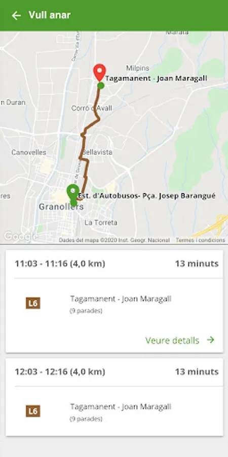 - I want to go: Route planner shows you the best bus route between two points of the municipalities of the conurbation.
