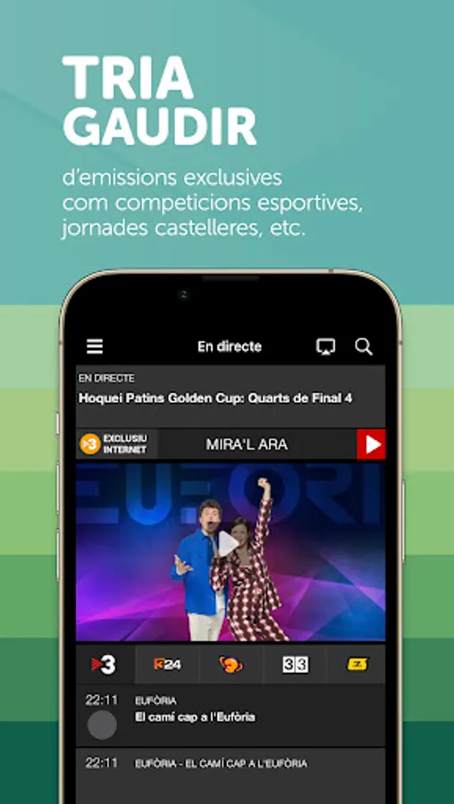 - Watch all TV3 channels live: TV3, 324, Esport3, 33, Super3 and TV3CAT.