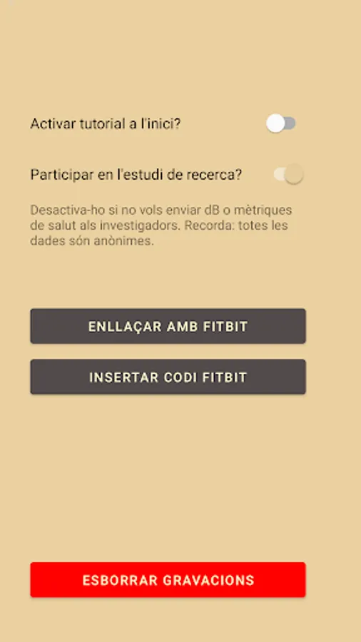 The app collects noise data (dB) and can connect with activity bracelets to detect changes in sleep patterns, heart rate, and more.
