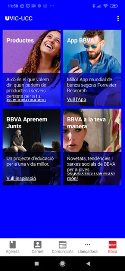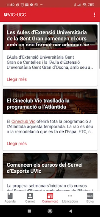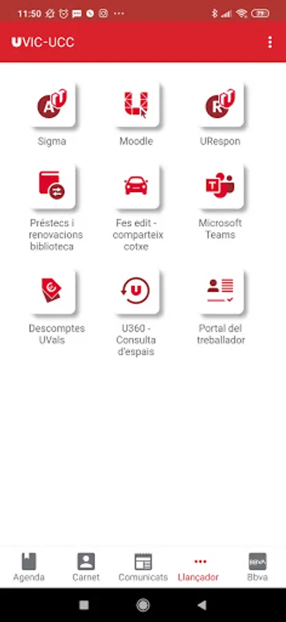 The main services are a shuttle that allows you to connect with different services, the consultation of basic personal data, whether or not you have a sports card, press releases and a university diary.