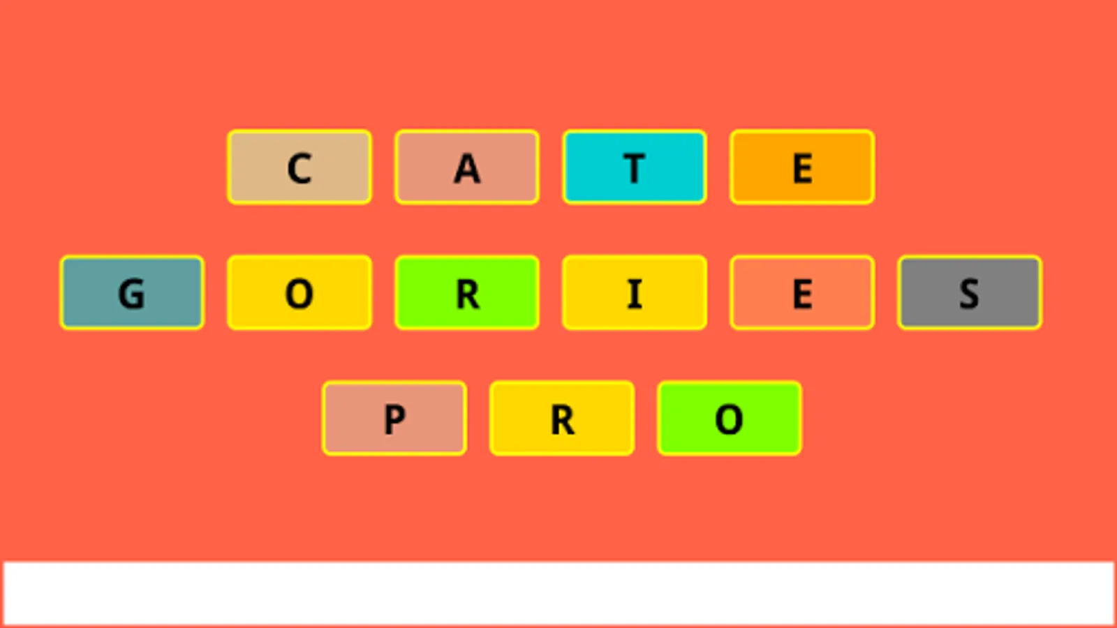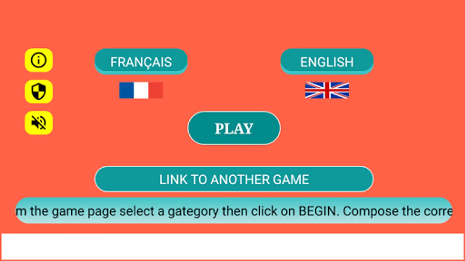 It is based on a new concept of word game aiming to find a word according to a chosen category. While you are challenging yourself, you will enhance your knowledge in many vocabulary categories. There are, in this edition, 12 categories: