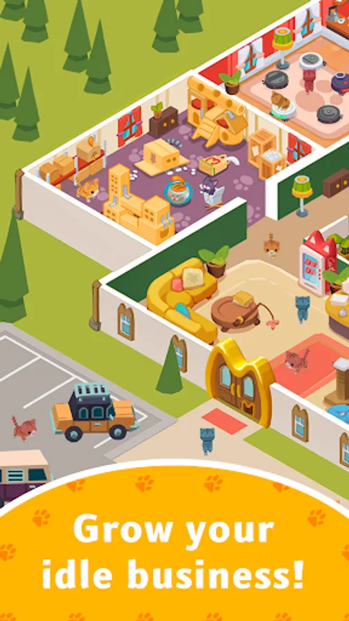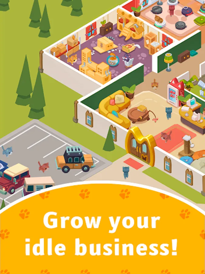 Add new rooms and types of activities for cats. Build new playgrounds or fun zones and buy more objects for your cats to interact with. Prepare marketing campaigns to bring more visitors to your theme park, and offer them the most enjoyable experience. Extend the parking facilities to increase the number of fluffy clients.