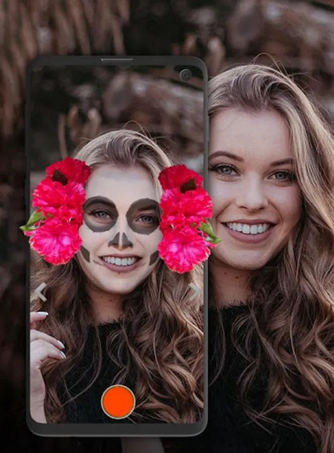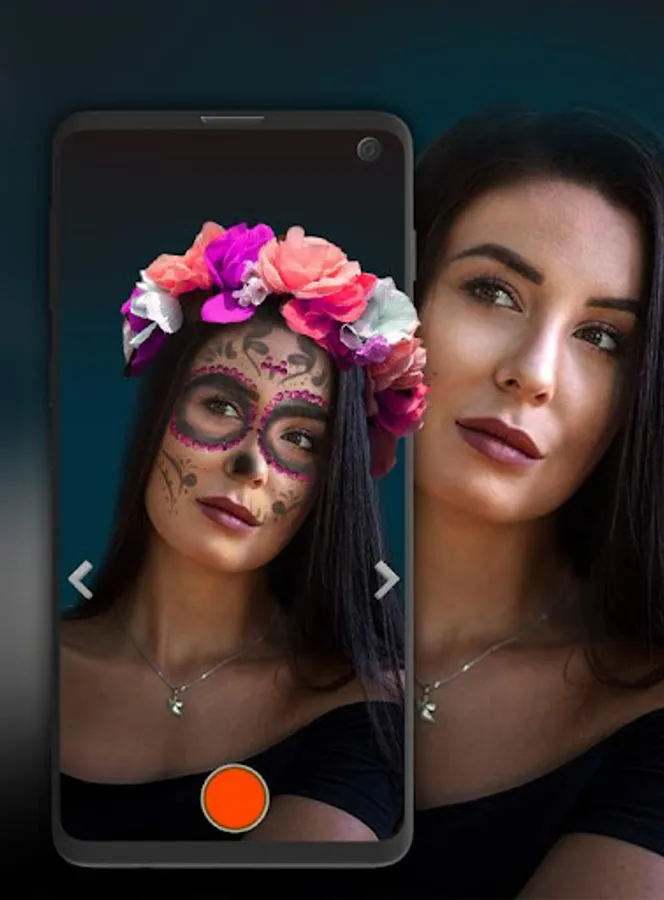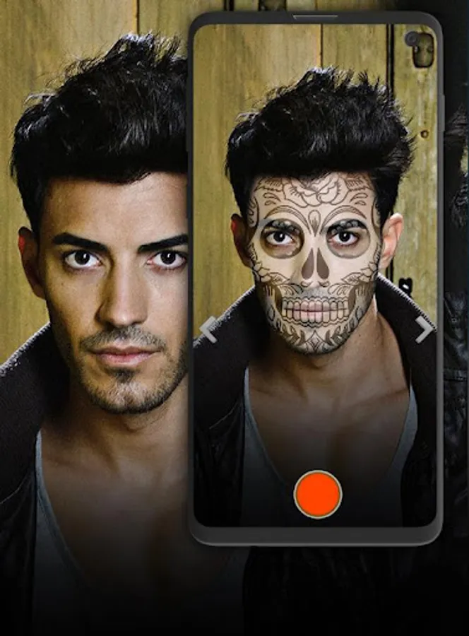 Get ready for the Mexican Dia de Muertos holiday with these Day Of The Dead Makeup – Dia De Muertos Calaveras. Have the best skull face mask with the help of this sugar skull photo editor. Decorate your face with face paint makeup and welcome your ancestors properly. Prepare ofrendas, cook favorite food of your ancestors and decorate your house with aztec marigolds. Dress as a Catrina and put calavera face stickers on your face. Play with this Dia de los Muertos photo editor and customize your look and your photos however you want. Step into this Halloween face paint salon and transform into a Calavera Catrina in a couple of minutes. Don't worry if you are not good at applying makeup and painting your face. This face tattoo photo editor will paint your face for you and give you a Mexican sugar skull makeover. Take a picture with this face art camera or choose a photo from your photo album gallery and experiment with different rose floral skull and sugar skull filters. Be creative and make the best Mexican skulls photo montage!