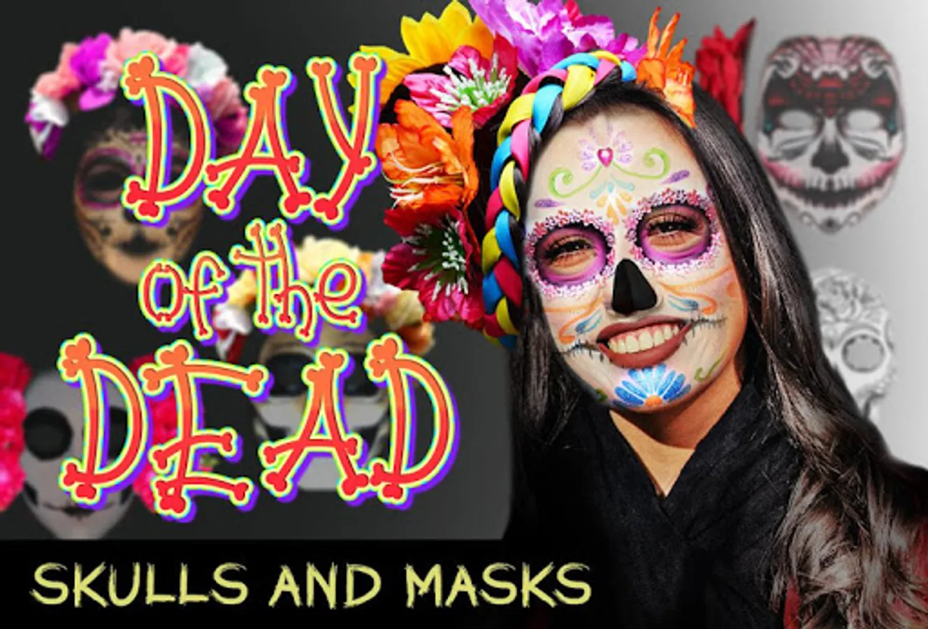 Put flowers in your hair or hat on your head and use this Day of the Dead photo editor to add skeleton face filters and turn yourself into la Calavera Catrina. Download Day Of The Dead Makeup – Dia De Muertos Calaveras and prepare for one of the most important Mexican celebrations. Pay homage to your ancestors and say prayers in respect to their memory. Make private altars and decorate your house with cempasúchil, alfeñiques and papel picado. Prepare your Dia de los Muertos costume and utilize this skeleton mask camera to place sugar skull face mask sticker over your face and your Day of the Dead look is completed. Greet your ancestors and celebrate their life by telling anecdotes and offering their favorite food and drinks. But first paint your face using this Halloween mask photo editor. Wear suits and fancy dresses and mimic a calaca of la Calavera Catrina by putting sugar skull face art makeup!