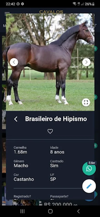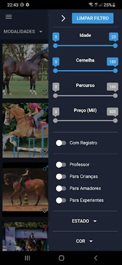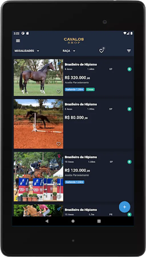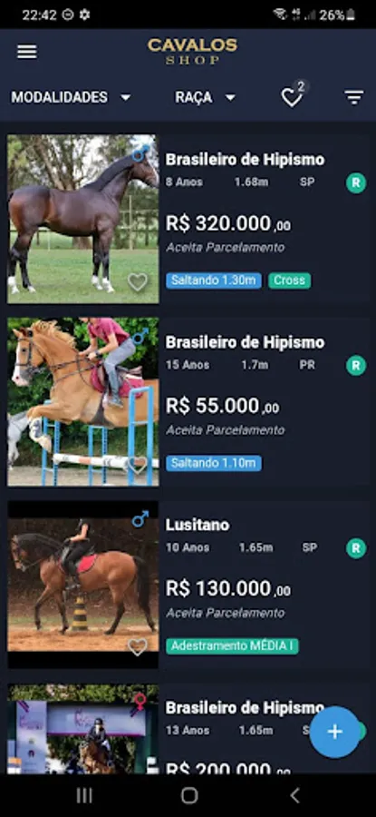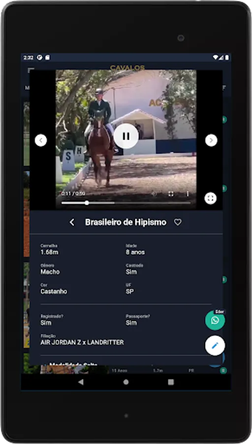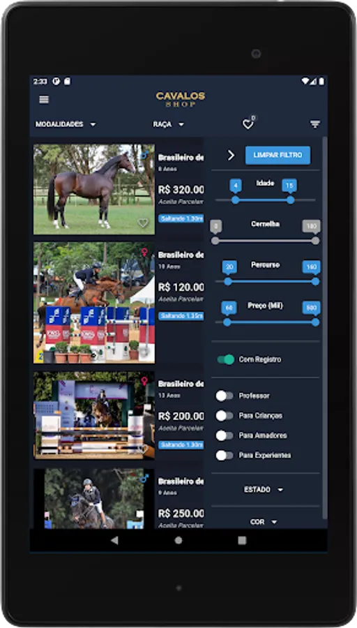 Download the app and find the ideal horse for you! Search by modality, age, withers and much more!