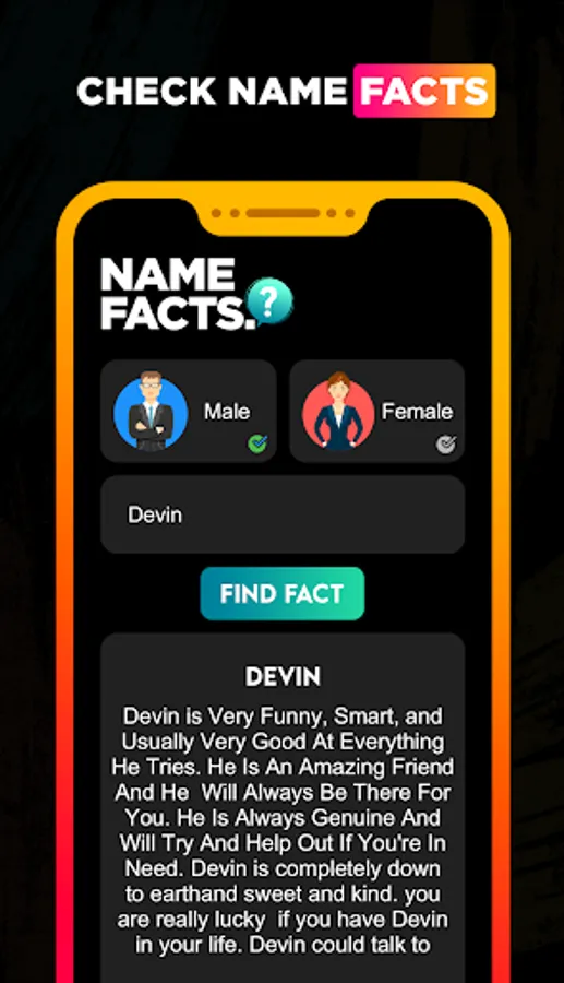 Name Meaning - Facts & Meaning application helps you to check what is behind your name. The information in your name can reveal your destiny.