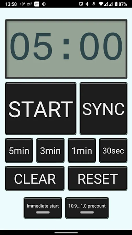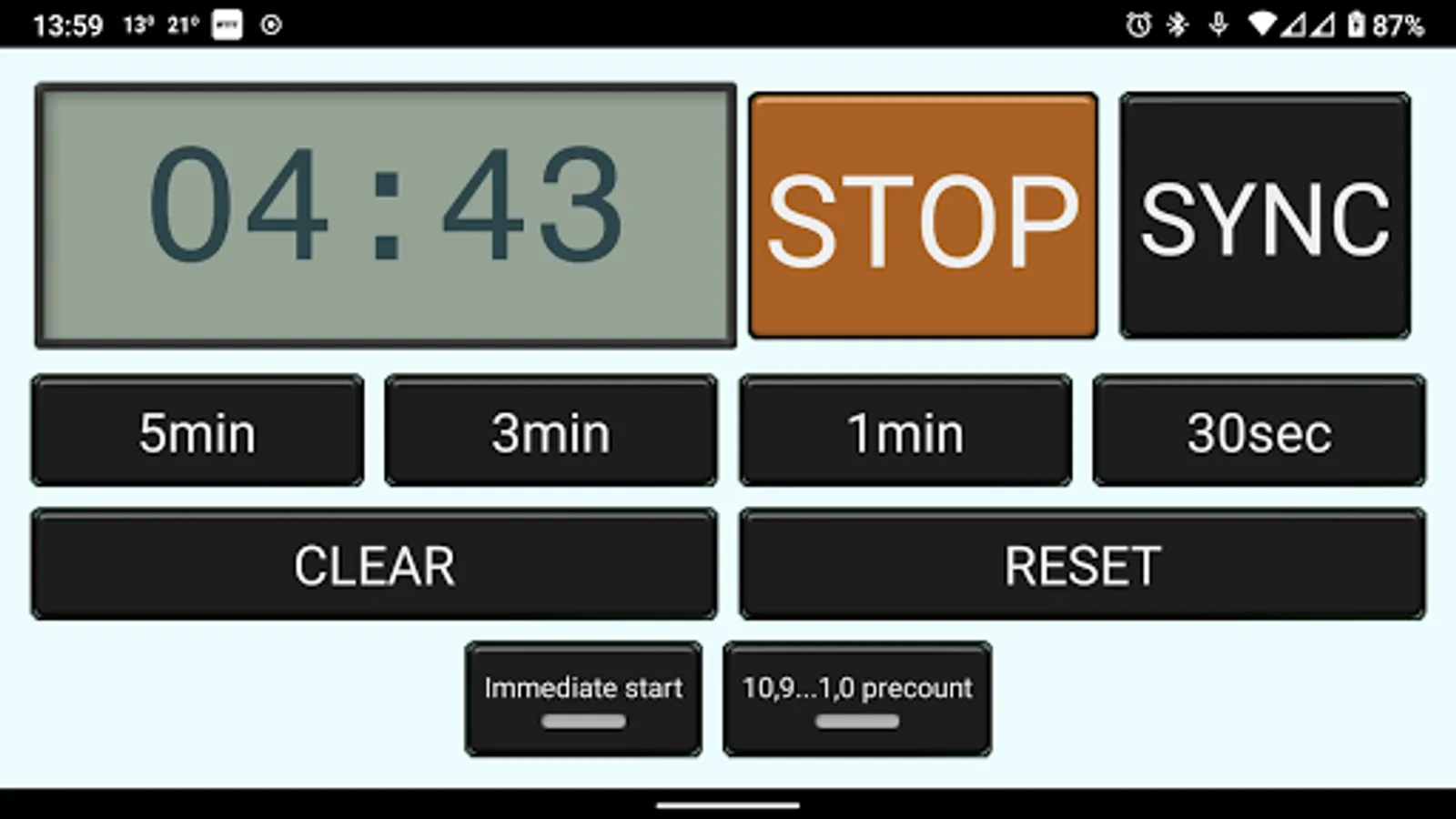 A "Sync" feature is included to jump forwards to the next whole minute in the countdown. This allows for catching up with the race committee signals if the initial signal was missed.