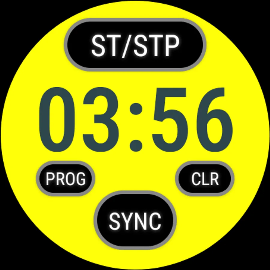 The Wear OS version includes a "Touch Lock" feature to prevent erratic UI behaviour when the watch gets wet. If your watch has a physical button, you can use it to control operation of the app. Once set to the desired sequence and face colour, long press on the digit display to lock the screen. Long press again to unlock. To operate the timer, press the physical button once to start. Subsequent presses trigger the sync feature. Long press the button to reset the start sequence ready for the next race.