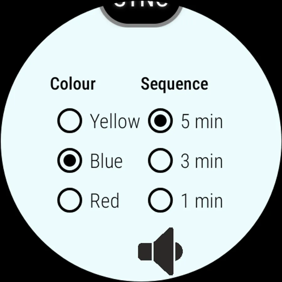 On Wear OS, scroll down to reveal the sequence setting, voice on/off and colour selection buttons. Scroll up to reach the main timer interface.