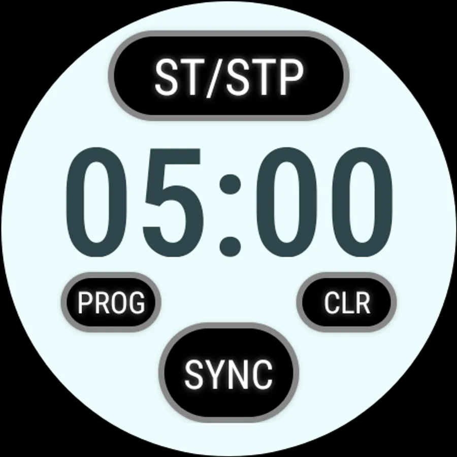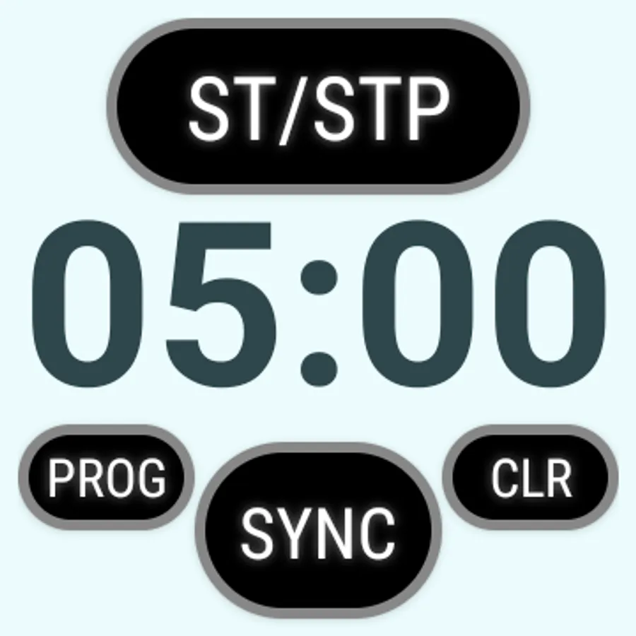 The Wear OS watch app includes a "Touch Lock" feature to prevent erratic behaviour when the watch gets wet. If your watch has a physical button, you can use it to control operation of the app. Once set to the desired sequence and face colour, long press on the digit display to lock the screen. Long press again to unlock. To operate the timer, press the physical button once to start. Subsequent presses trigger the sync feature. Long press the button to reset the start sequence ready for the next race.