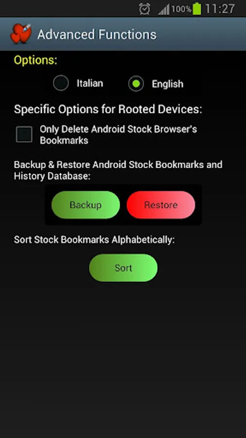 . option to MANUAL BACKUP Android Stock Browser's Bookmarks and History.