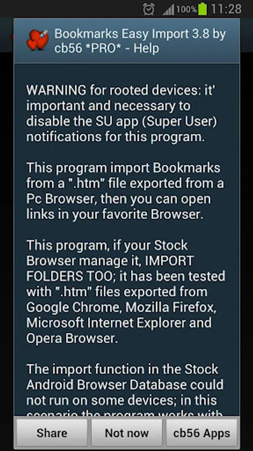 Users of non-rooted devices can open links in their favorite Browser using program's interface; in this scenario the program works with a proprietary database.