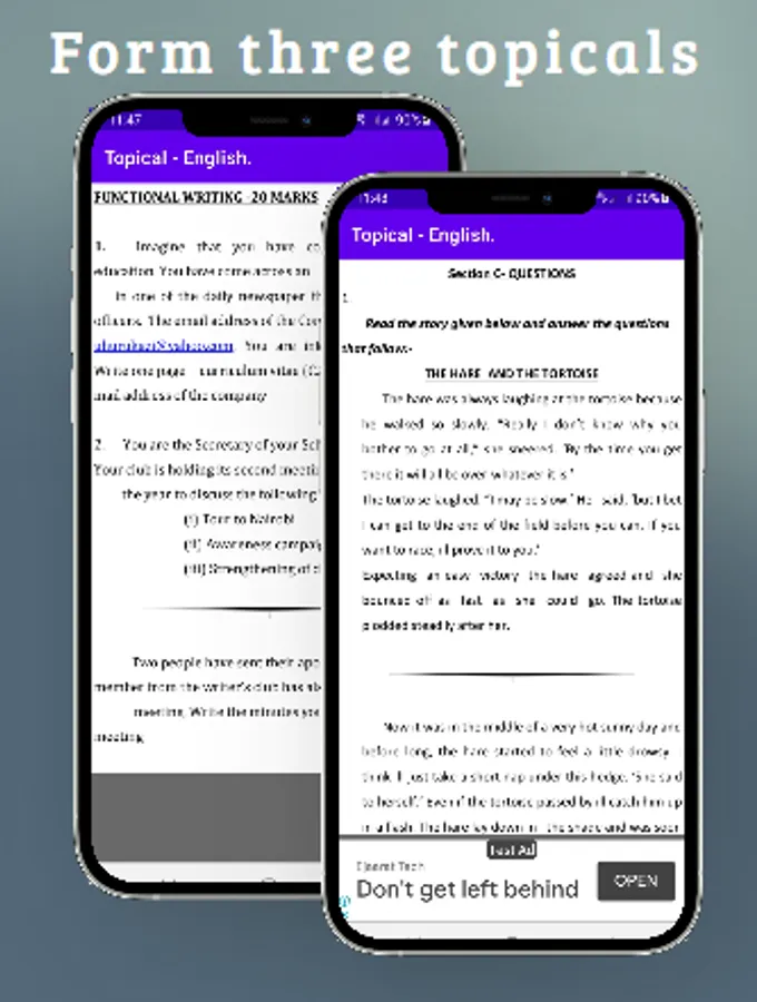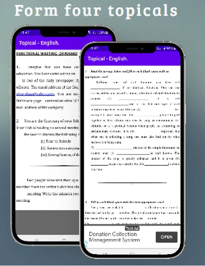 English: Topical Questions is an application that has assembled past KCSE Questions and answers beginning from form 1 to form 4. This Application is set to equip its users with skills and expertise to tackle KCSE Questions. The Quality of Questions dispensed by the App is KCSE Standard. English: Topical Questions and Answers features the following Topics within the English Syllabus: