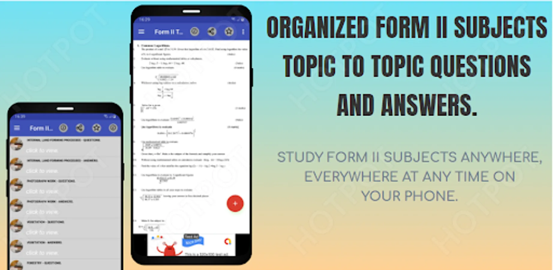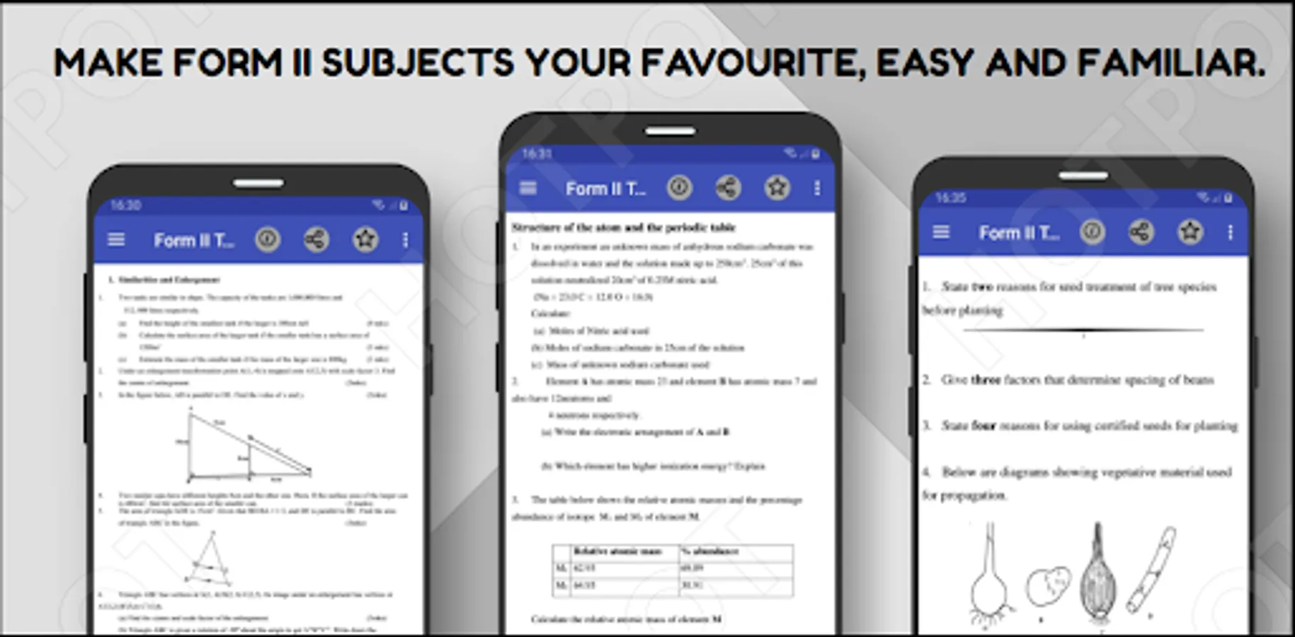 Form 2 Subjects Topical Questions and Answers App assembles the mentioned class level Subjects' Topic by Topic Questions and their Answers. The Application is set to sharpen its users with the Form 2 subjects' content and knowledge. The Quality of the questions is KCSE Standardized and directly from Form Two Syllabus. This App features the following subjects: