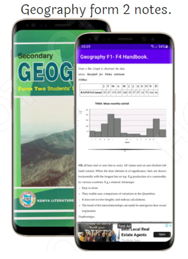 Geography: Form 1 - 4 Notes compiles form 1 - form 4 Geography KCSE standardized notes. The application is set to equip learners with the relevant Geography content featured within the 844 Syllabus. The application sharpens students and teachers with expertise in tackling Geography KCSE final papers. The application contains the following topics: