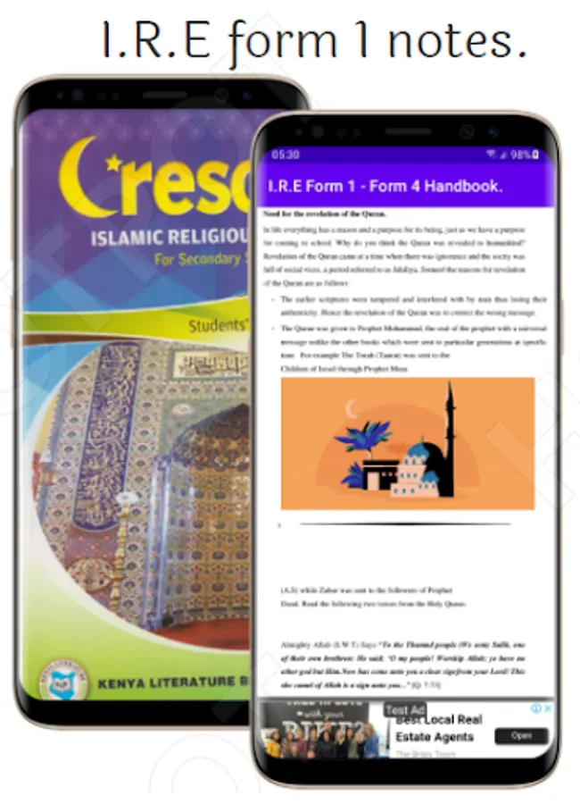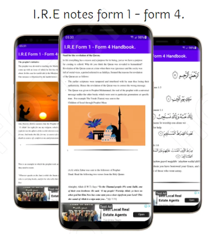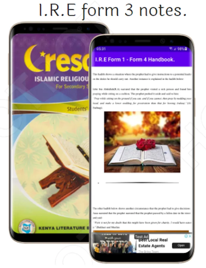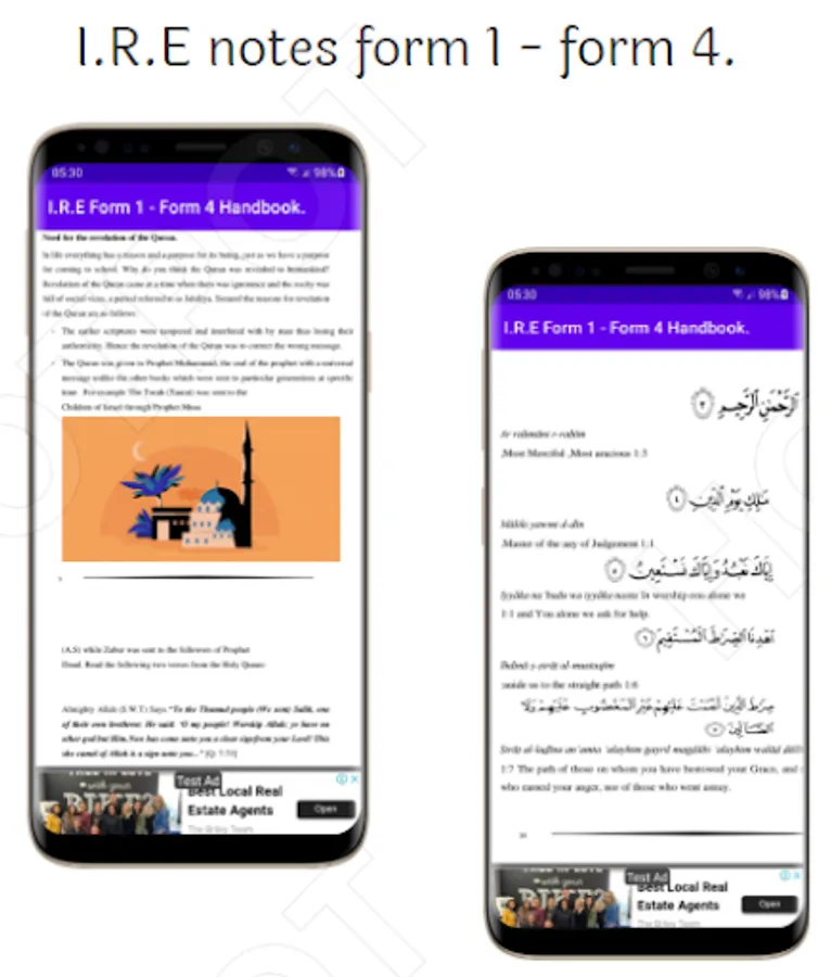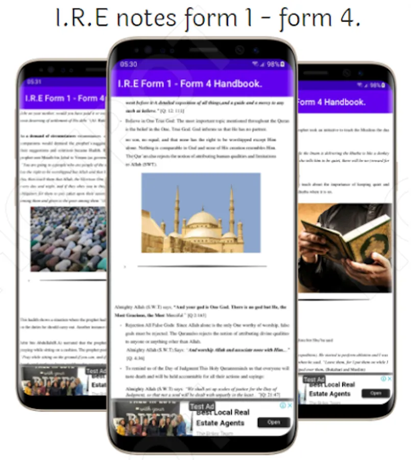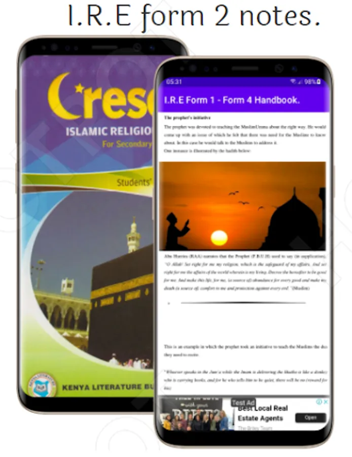 I.R.E: Handbook f1 - f4 notes mobile software contains form 1 - form 4 IRE KCSE standardized notes. The main theme of this application is to to enhance knowledge in Islam Religious Education. The application ensures the student has gained skills and expertise in tackling IRE questions more so in the KCSE final exam. The application features the following topics:
