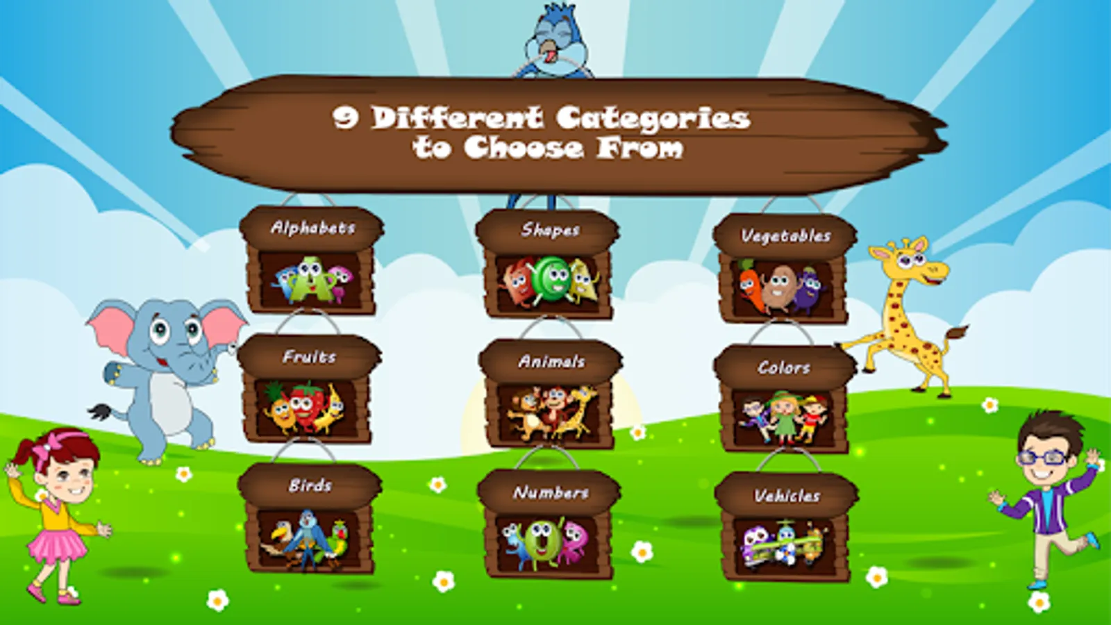 Choose from different 9 different learning categories all featuring kid-friendly animations, professional voice over and simple tap and match gameplay.