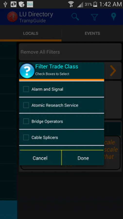 Allows easy searching by Local, City, State and browsing the list. Use your GPS enabled phone to navigate to any LU Office in the country!