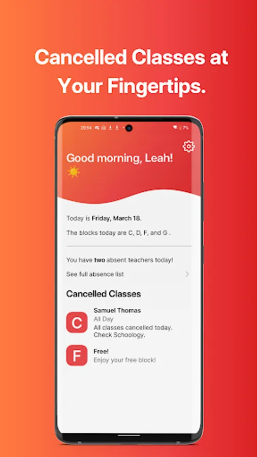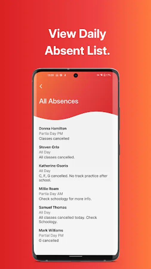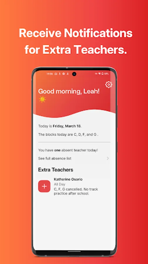 • Get notifications when extracurricular teachers and coaches are absent too, not just your core classes.