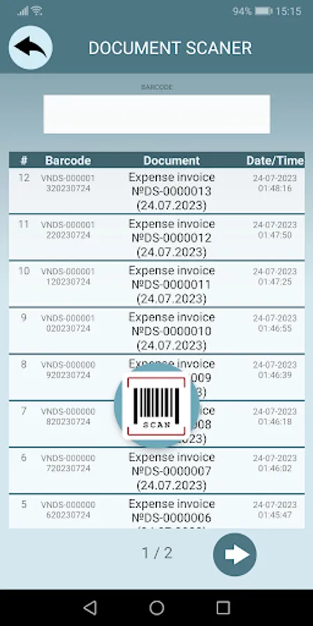 Documents are tracked using a document scanner. In this mode, the application works as a regular barcode scanner, which scans document codes and immediately transmits them to the DocTracker cloud.