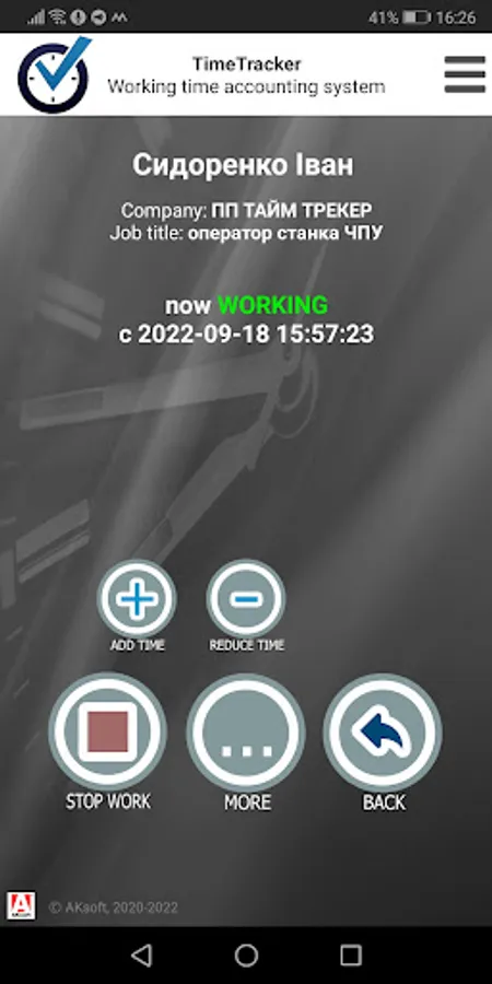 Accounting of working hours of employees and personnel in the TimeTracker system.