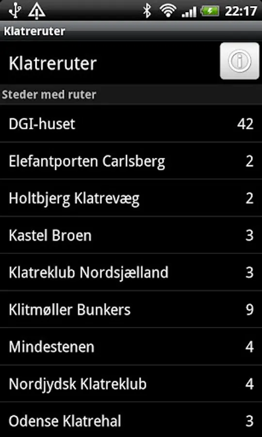 Route database which routes are stored in can also browse through Klatresteder.dk