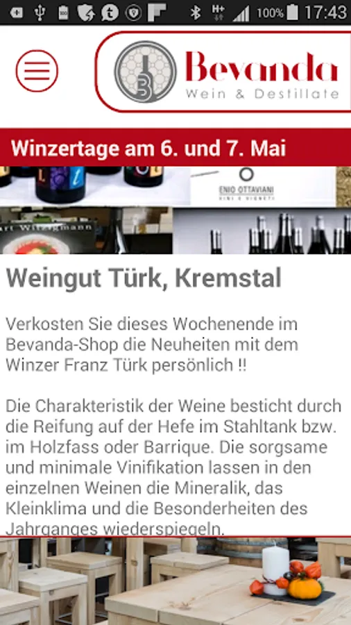 With our app you get next to news in the world of wine, and an overview of our product range and your purchases. To help you choose, you can also evaluate our wines and thus always know which product has good hit your taste.