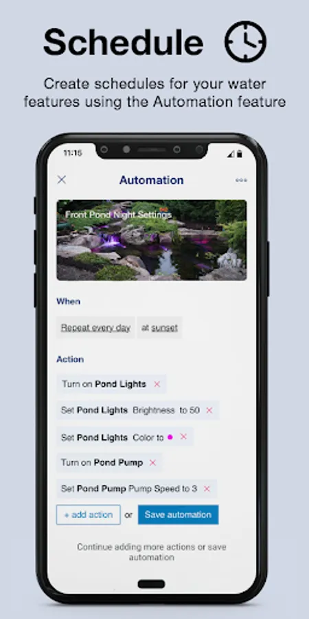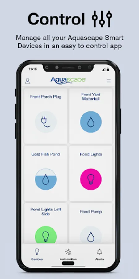The Aquascape Smart Control App lets you control outdoor lighting, ponds, waterfalls, and fountains from anywhere at any time using your smartphone or tablet. Outdoor living has never been easier!