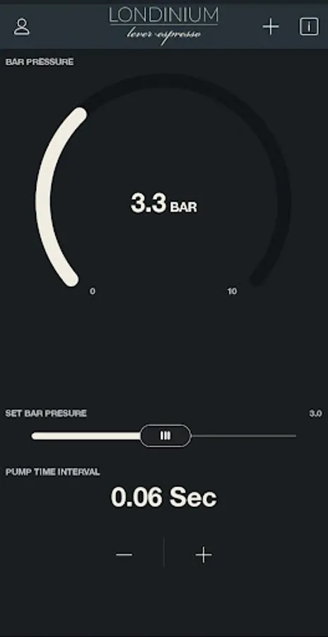 This app is for the LONDINIUM model R lever espresso machine that has the pressure transducer (digital pre-infusion) module and wireless dongle installed. It will not have any effect on a LONDINIUM model R that does not have both of these components installed. This app allows you to alter the pre-infusion pressure and the pump delay from your phone or tablet. Low pre-infusion pressures should be matched with a low pump delay value and longer pump delays for high pre-infusion values. Dark roasts require low pre-infusion pressures, medium roasts medium pre-infusion pressures, and light (nordic or filter) roasts require high pre-infusion pressures. If you have any questions please do not hesitate to contact LONDINIUM Espresso.