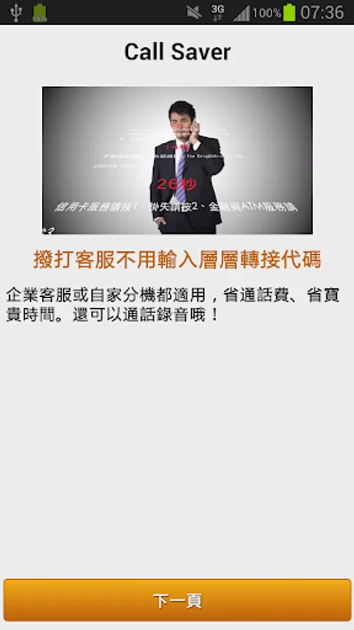 Call Saver APP Customer Service Save Money Pass / Customer Speed Pass, Solve Your Problems! Lets you press a dial button to go directly to the customer service specialist. After being dialed by the mobile APP, it will automatically send out layer-to-layer transfer codes to help you save call time and save call costs. Less call time, and your phone can save more power.