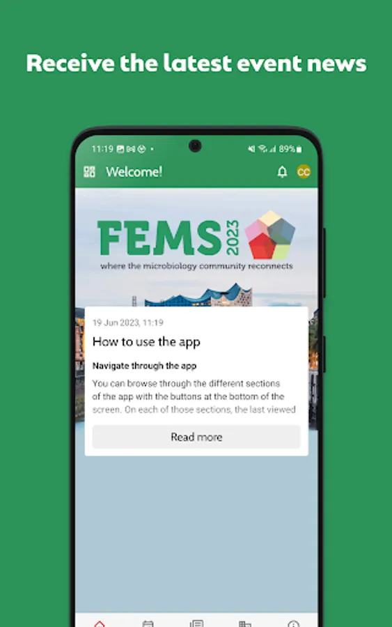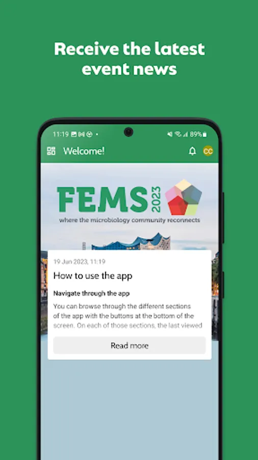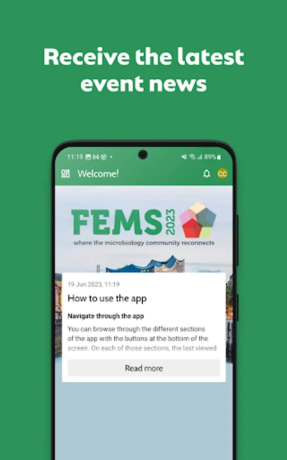 The official FEMS2023 Congress App helps you schedule the sessions you want to attend and network with other delegates, and provides you with useful service information around the congress.