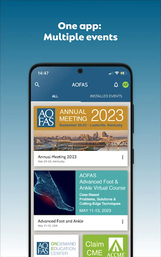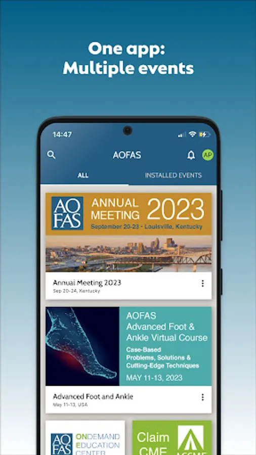 AOFAS Society App is the portal to all events, meetings, and activities from the American Orthopaedic Foot & Ankle Society. Registered attendees may log in to access abstracts and meeting agendas, browse ePosters and handouts, claim CME, and view other presentation and speaker information.