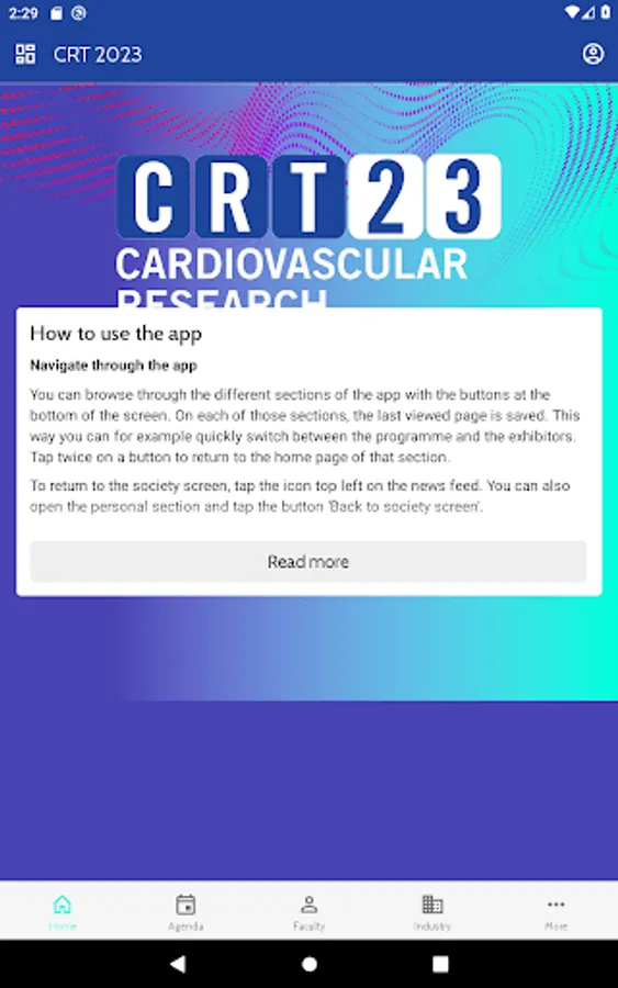 Throughout the rest of the year, the app functions as an invaluable mobile portal for CRT resources: use it for quick access to the CRT website, CRTonline, CRM journal, and get the latest news from CRT.