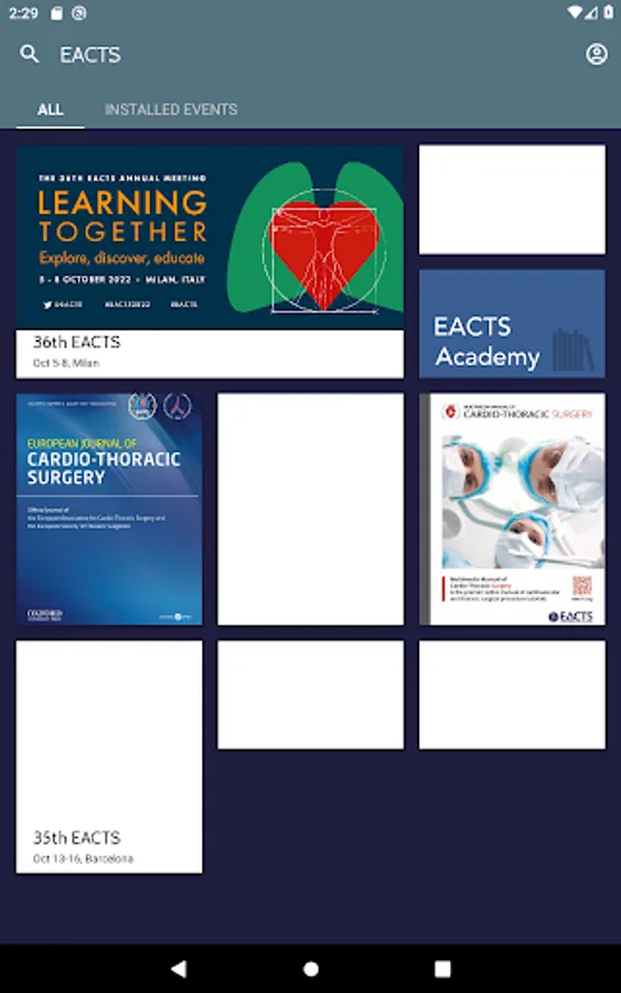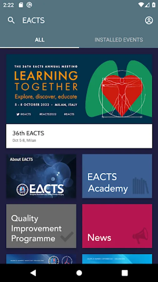 The mobile app for the European Association for Cardio-Thoracic Surgery where you can access all news and events (Academy Courses & Annual Meetings) organised by EACTS