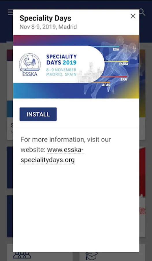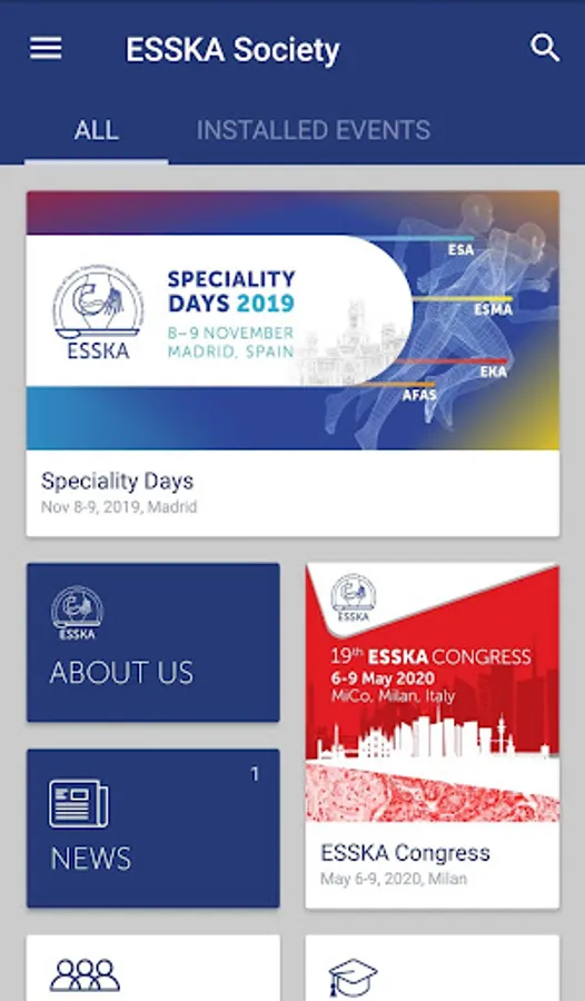 The official mobile app for the European Society of Sports Traumatology, Knee Surgery & Arthroscopy (ESSKA). An easy and interactive way to access and subscribe to ESSKA's offerings - ESSKA Congress; ESSKA Speciality Days; latest news of the ESSKA Society and its Sections - AFAS, EKA, ESA & ESMA; membership; education; ESSKA Academy; Publications: Journals - KSSTA, JEO, ESSKA Newsletter; ESSKA Books & many other ESSKA projects and initiatives.