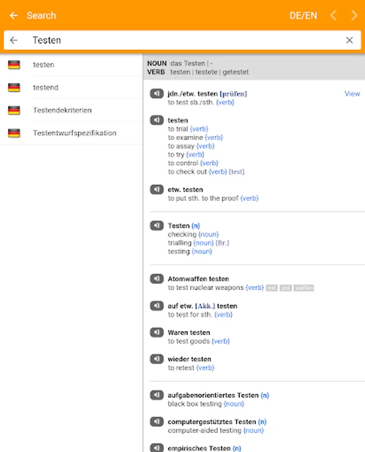 Before you buy, please test the free version of the app ("dict.cc")! Using this version you can try out all premium features for a week.